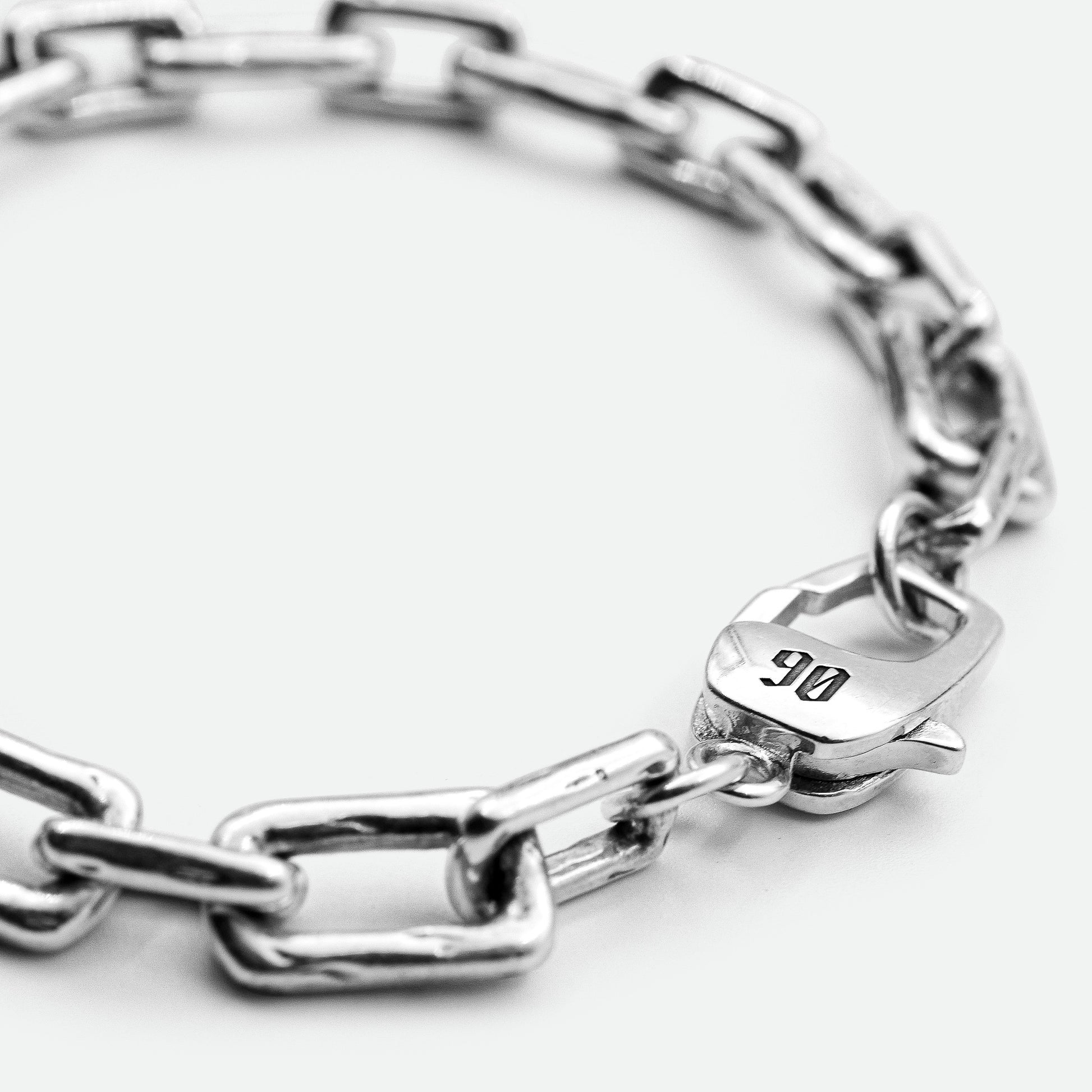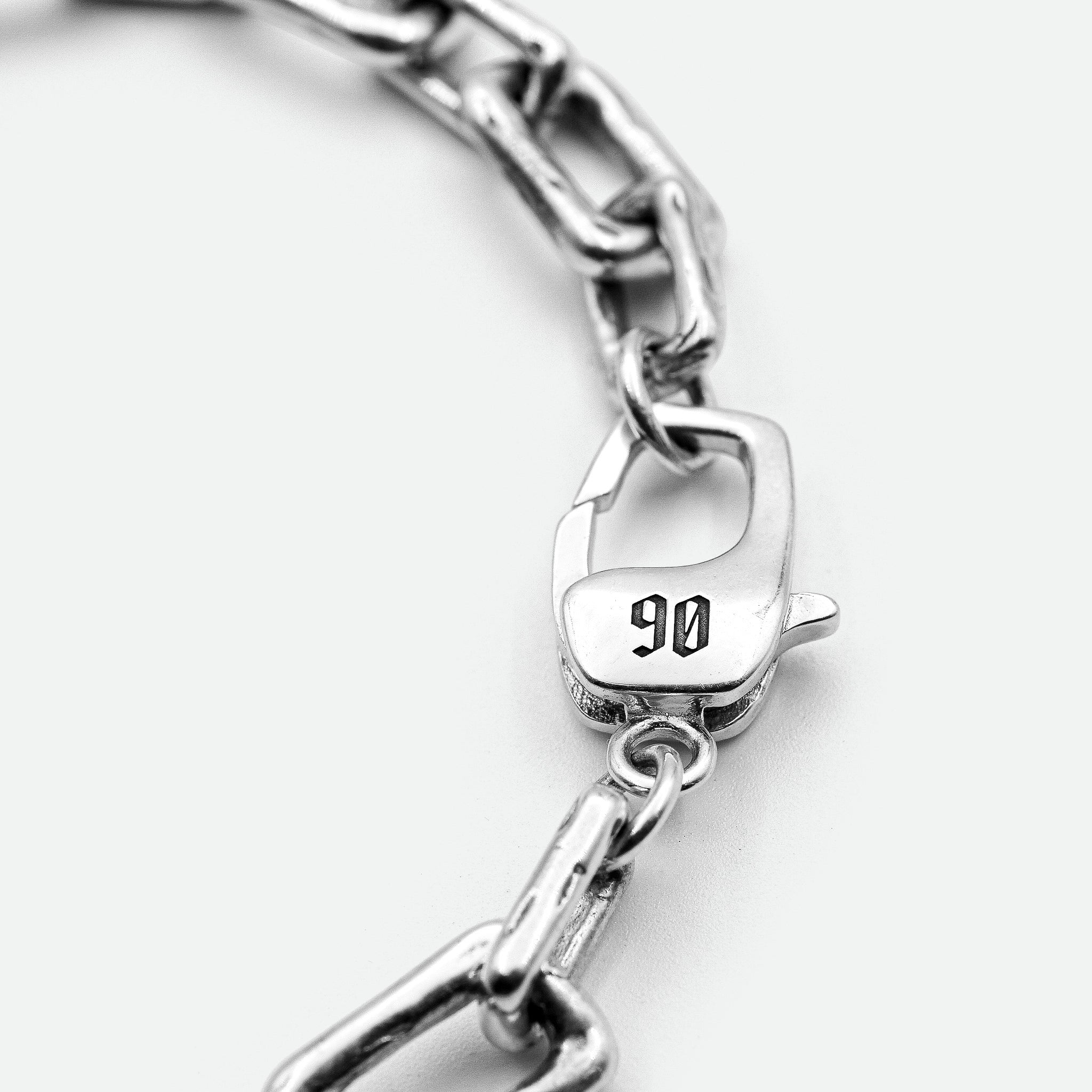 Elevate your style with the Curtis Bracelet, a vintage-inspired 925 sterling silver chain bracelet designed with hand-etched detailing for a lived-in feel. Featuring varied chain links for bold character, this statement bracelet is handcrafted from recycled sterling silver and finished with a mix of oxidised and high-polished textures, enhancing depth and contrast.
