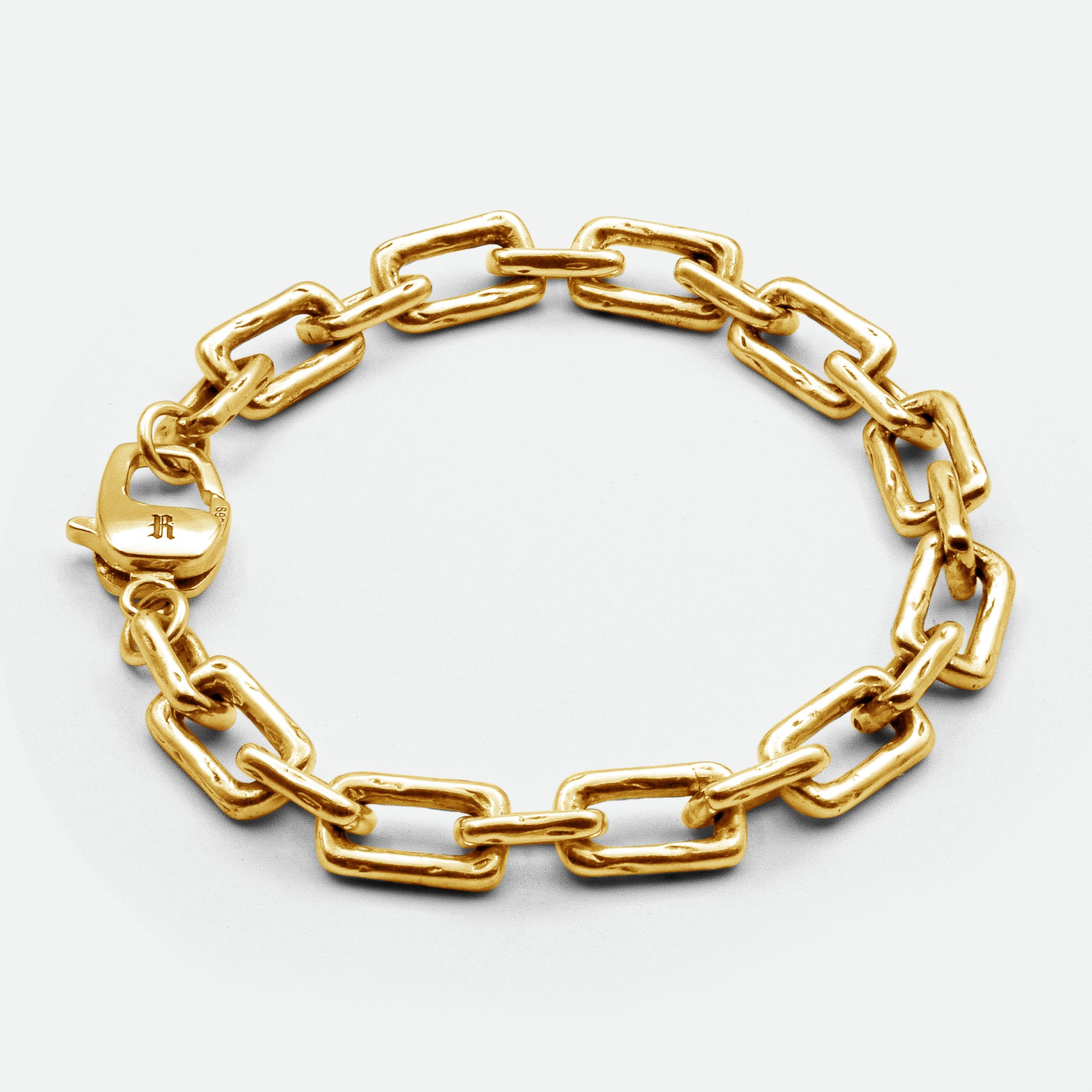 Complete any ensemble with the RAWNINETY Curtis Bracelet in Gold, an essential accessory that embodies vintage charm and contemporary style. Hand-etched with a lived-in feel, this distinctive piece features individual links of varying proportions, making it the largest of the RAWNINETY chain set. Whether worn alone for a minimalist appeal or layered for a bolder statement, the Curtis Bracelet in Gold offers endless styling possibilities to complement any look.